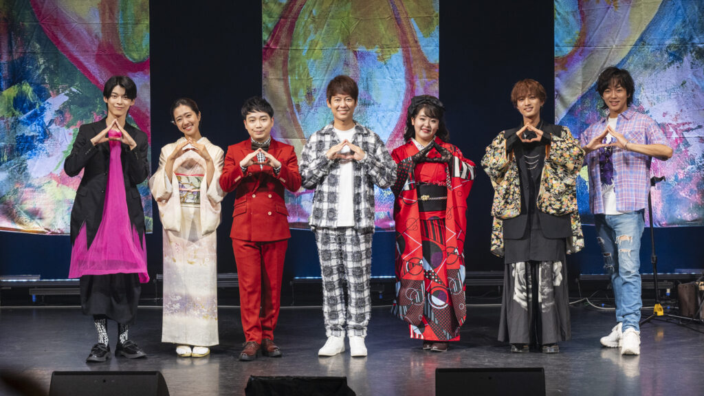 ▲写真左より原田波人、羽山みずき、三丘翔太、松阪ゆうき、朝花美穂、青山 新、岡本幸太