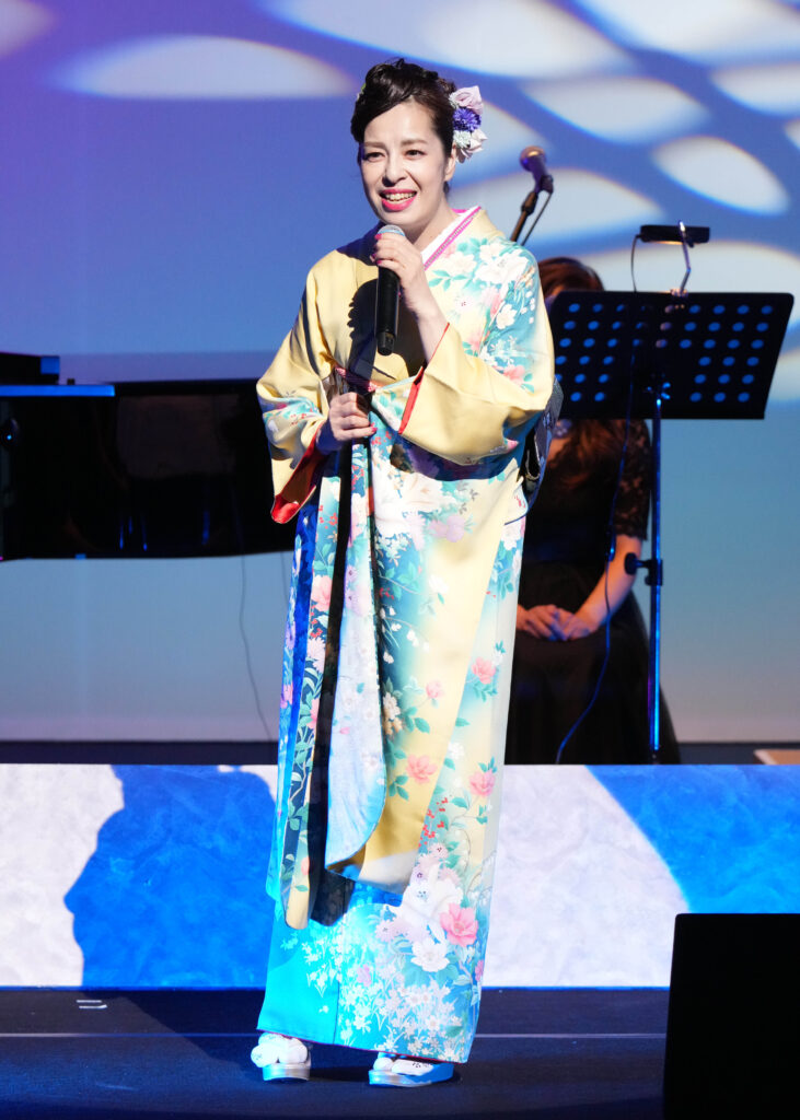 会場は熱烈なファンで満席となり、特別ゲストの若草恵がピアノ演奏で参加する中、「25周年のコンサートの幕を開けることができたのも、これまで応援してくださった皆さまのお陰です。今日は、これまでの歌手人生を振り返って歌をお届けします」とあいさつ。