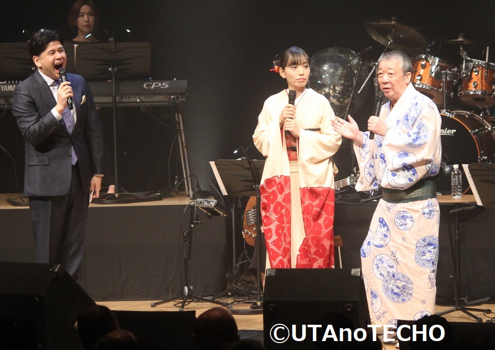 会場には夫・高安も来場。スペシャルゲストに笑福亭鶴光師匠が登場した。鶴光師匠は、高安を応援していた縁で杜とも知り合い「娘のようにかわいがっていて、『夕霧港』が大好き」と語った。
