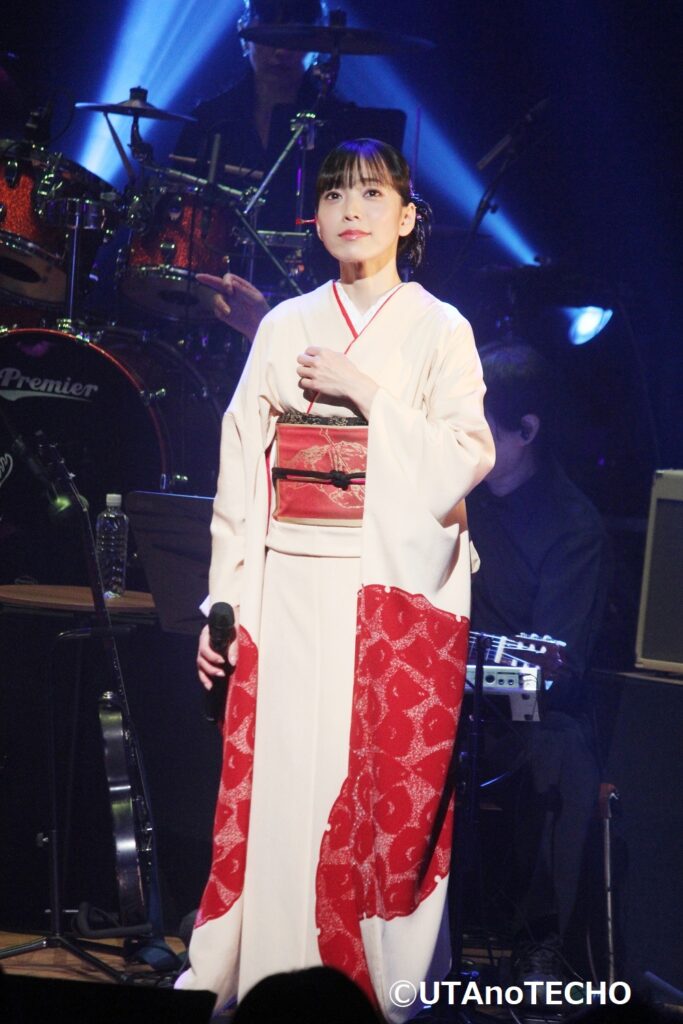 新曲『赤い満月(つき)』や、デビュー曲『三味線わたり鳥』、フジテレビ系「千鳥の鬼レンチャン」で唄って好評だった『少女A』など全23曲を熱唱。