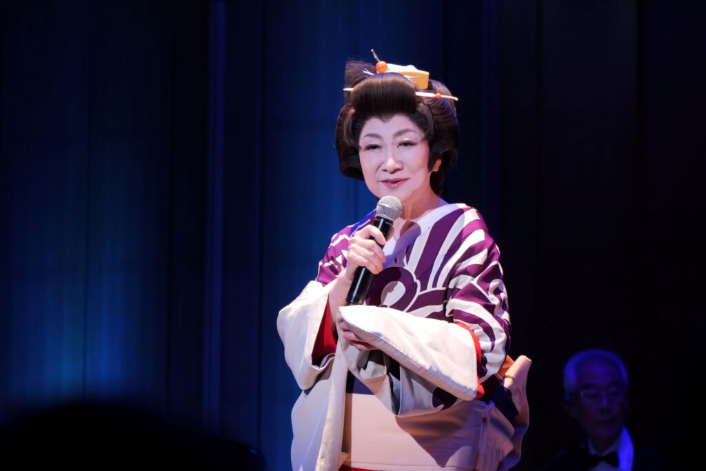 「昭和100年、改めて日本の歌謡曲の歴史を振り返り、久々に俗曲の粋な世界をお届けします」と語り『奴さん』、民謡の世界『木曽節(長野民謡)』『おこさ節(秋田民謡)』『おはら節(鹿児島民謡)』を披露し、歌手生活61年の大月みやこならではの世界観で<第一景>を締めくくった。