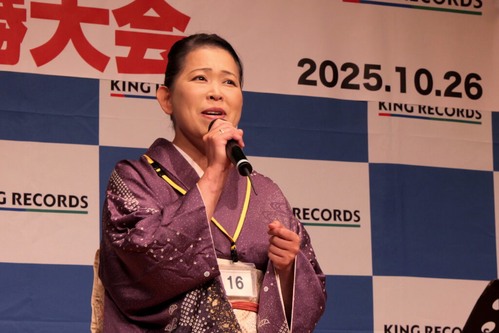 グランプリを受賞した指宿さんは、「1月に母が亡くなりました。母もカラオケが大好きでキングレコードの大会で優勝したことがあります。私のこともずっと応援してくれていて、やっと思いを引き継げたという気持ちでとてもうれしいです!」と喜びを語った。