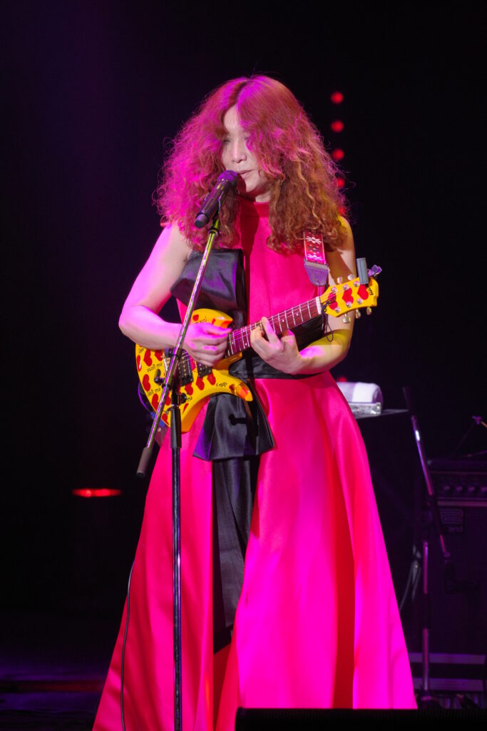 2部はピアノとヴァイオリンとベースを従えたバンド編成のステージ。花びらを模した黒いヘッドドレスに鮮やかなピンクに黒をあしらったドレスで登場し、『サントワマミー』や自身のハーモニカとギタレレの演奏による『湯の町エレジー』(近江俊郎)、エレキギターでの『堕天使ロック』(ジャックス)など幅広いジャンルでタブレット純の世界を披露。
