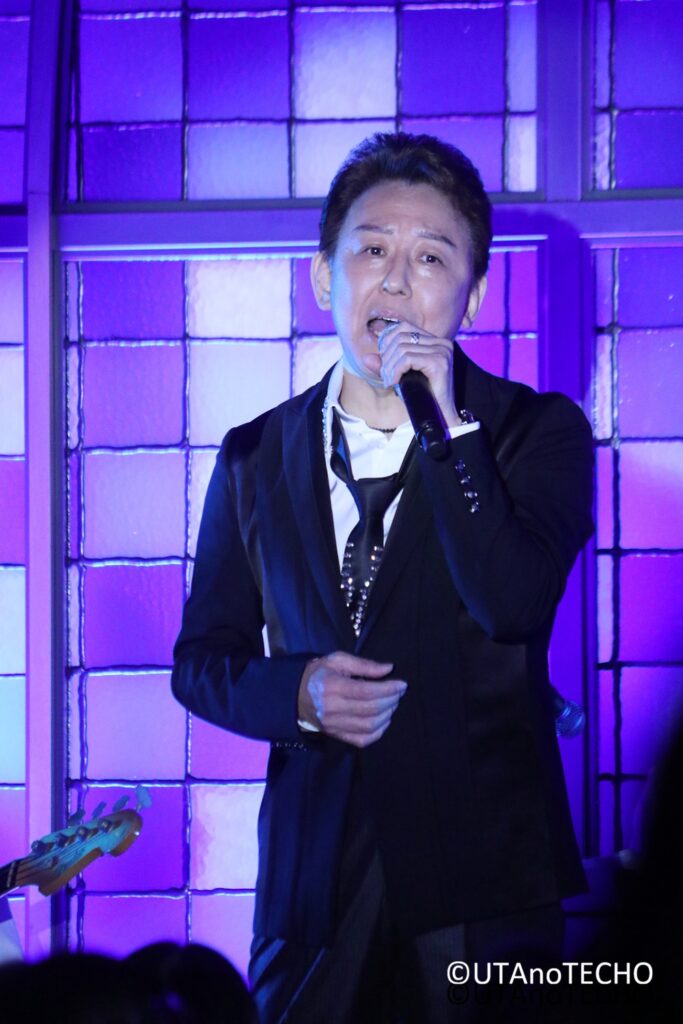 敏いとうとハッピー&ブルーのボーカリストとして活躍した後、ライラックスを結成。そして今年6月にテイチクへ移籍し、ソロ曲『月夜のメモリー』をリリース。この日も、『White Christmas』で幕開けし、早速『月夜のメモリー』を熱唱。グループ時代の逸話も披露しながら、ファンや友人、知人などで満場の会場を沸かせた。
