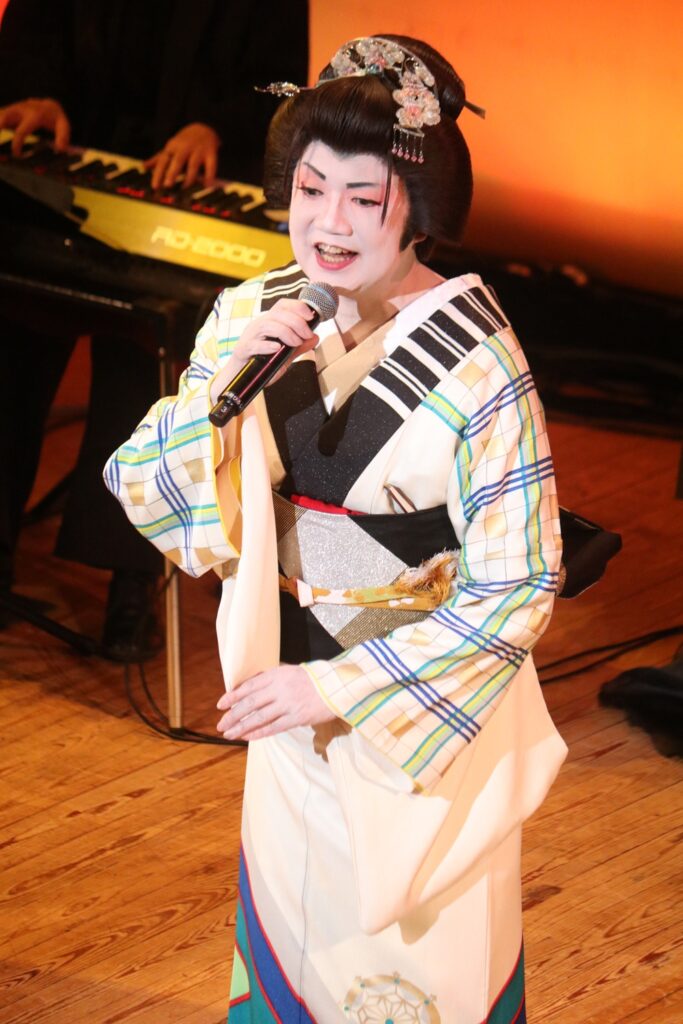「デビュー42年目、3つでデビューしたので…(笑)。でも、年齢は数字だとおっしゃる方がいて、その通りだなって。足が痛いとか腰が痛いとかいろいろありますが、出かけましょう! 出かけたら楽しいことがありますから」と笑顔で語りながら、流麗な舞いと歌を次々に披露。