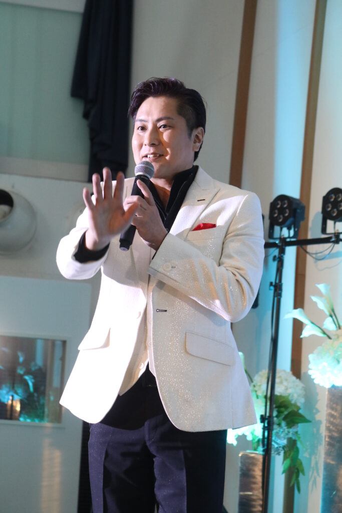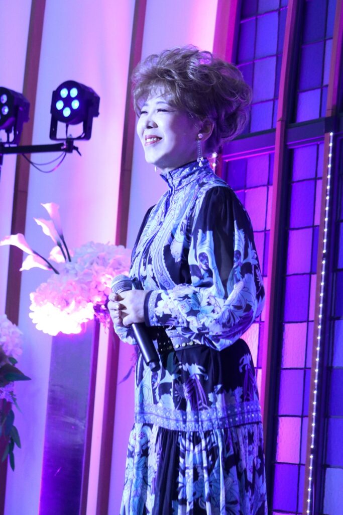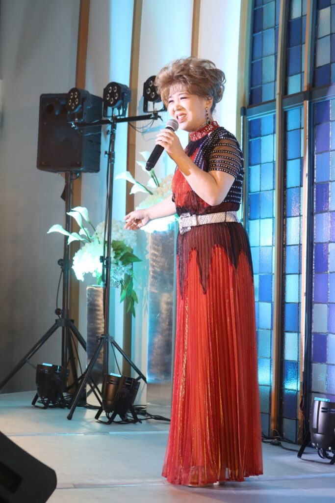 ▲ドレス姿も華々しい、説得力ある歌声の“なつきようこ”