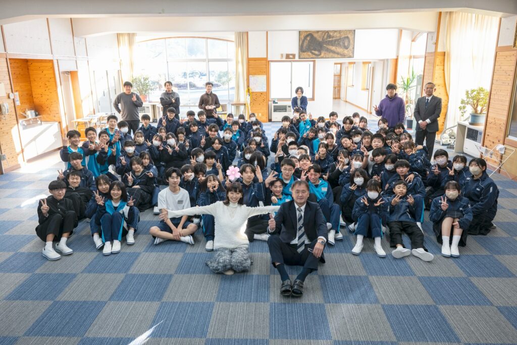 この日、校内には各学年毎に全生徒が集まり、なつこを出迎えた。学年ごとにあいさつを交わした後、なつこは生徒たちに向けて『星のふるまち』をアカペラで披露。いつも耳にしている楽曲を“目の前で聴く”ひとときに、生徒たちは耳を傾けていた。