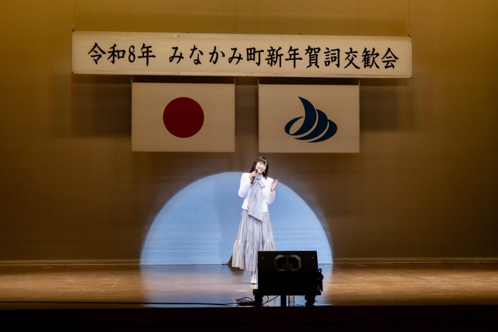 この楽曲は、町村合併5周年のイメージソングとして制作されたもの。みなかみ町の親善大使も務めるなつこにとって、新年のこの場で唄うことは、みなかみ町への感謝を直接届ける大切な時間となっている。客席からは、長年この歌を聴き続けてきた町民や来賓者から温かな拍手が送られ、会場は穏やかな空気に包まれた。