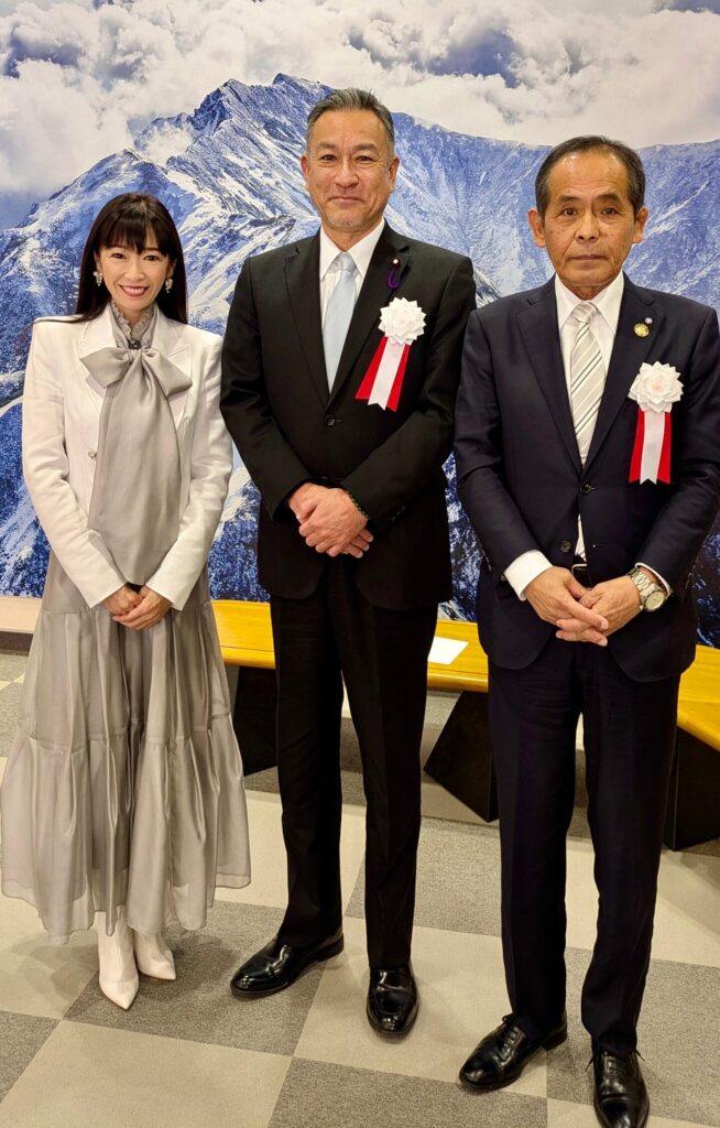 ▲左から なつこ、みなかみ町 議長・小林 洋氏、みなかみ町町長・阿部賢一氏