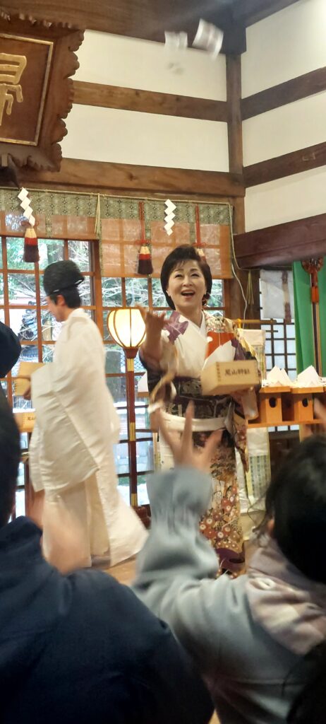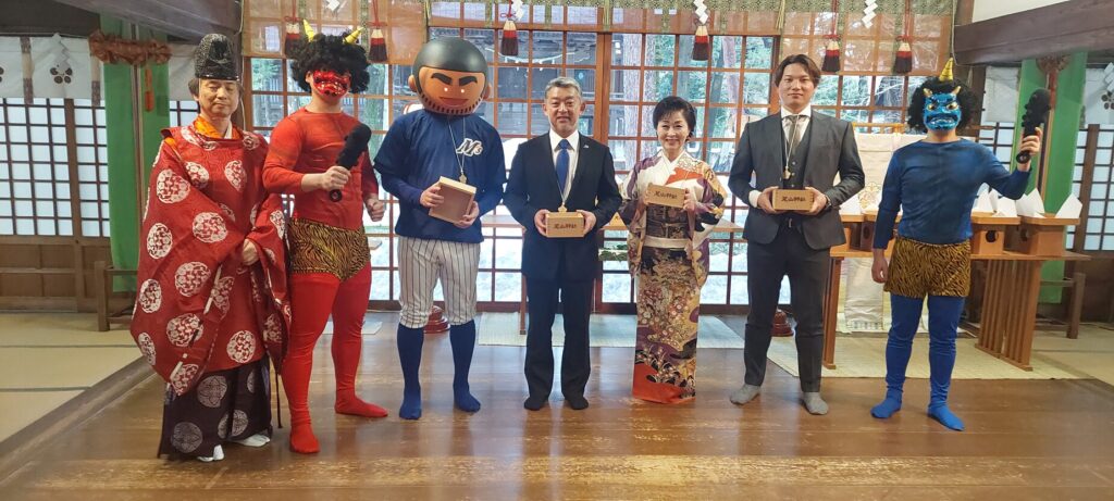 大雪に見舞われた金沢だが、当日は天気に恵まれ330名のファンや観光客・地元住民が訪れ、氏子と共に「鬼は外 ! 福は内 ! 」の掛け声で一斉に福豆が撒かれ多いに盛り上がった。