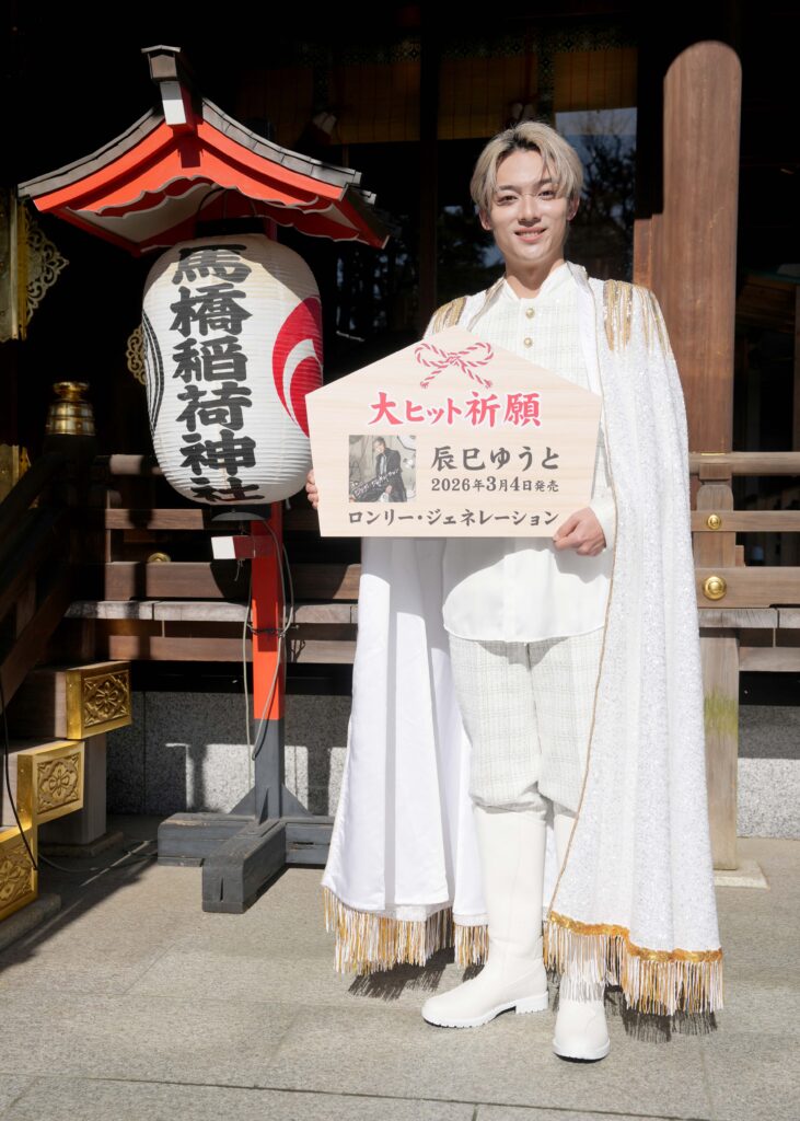 今年でデビュー9年目を迎えた〝演歌界の王子さま〟こと辰巳ゆうと。3月4日に10枚目のニューシングル『ロンリー・ジェネレーション』を発売するのに先がけ2月9日、東京・馬橋稲荷神社にて新曲ヒット祈願を行った。