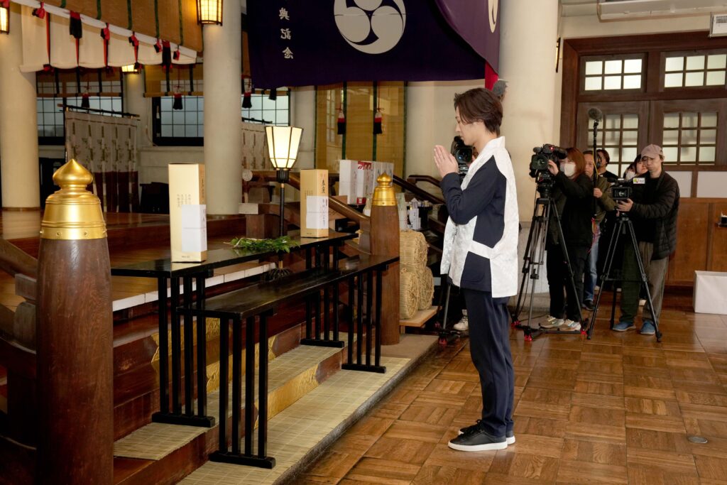 本殿で、事務所社長やレコード会社社長らスタッフと一緒にヒットを祈願した山内は「『この世は祭り』というタイトル通り、この世の中に対するメッセージソング、人生讃歌を作っていただきました。すごく気に入っています。〝この世〟というタイトルがついた曲は初めてでして、いまのような混沌とした世の中で、未来が明るくなるようなメッセージをこの歌を通して伝えたい」と、2026年の新たなスタートを切った新曲の大ヒットに意欲満々だ。