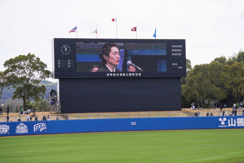 唯一無二の“ノックアウトボイス”で知られる真田ナオキが3月7日、高知県立春野総合運動公園野球場で行われたプロ野球オープン戦「埼玉西武ライオンズ VS 東京ヤクルトスワローズ」にて、自身初となる国歌独唱の大役を務めた。