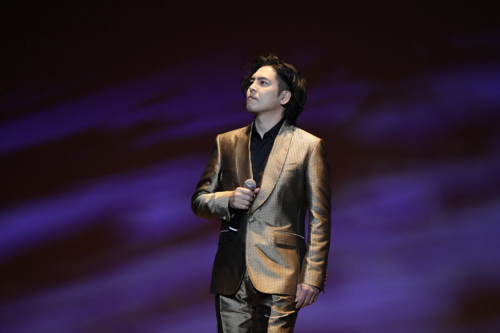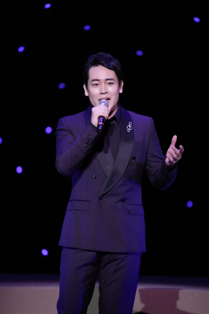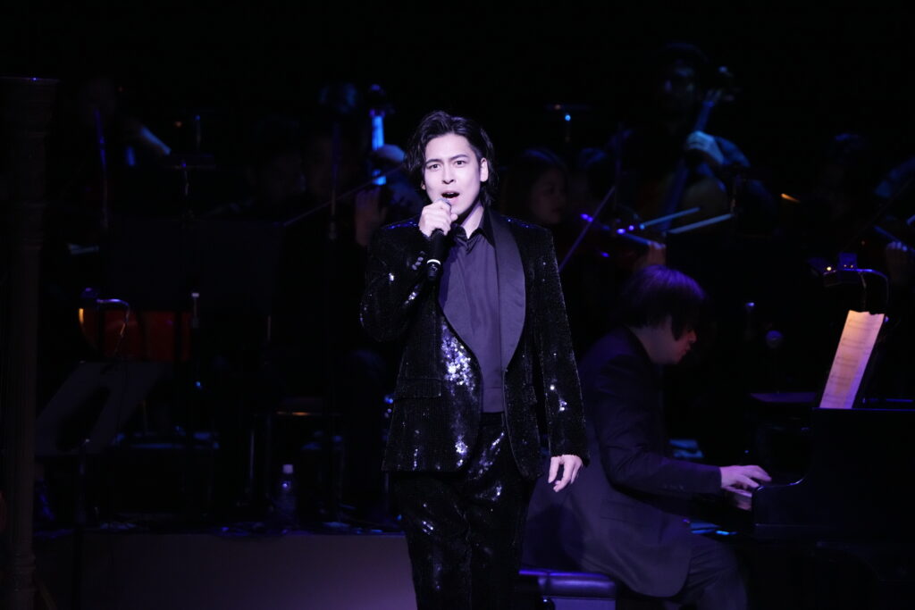 ▲「しつらいのあるコンサート」のサウンド中、音と言葉を慈しむように、泳ぐように唄い綴った木村竜蔵。一幕ラストには本編唯一の日本の歌『雨』(玉置浩二)を唄った