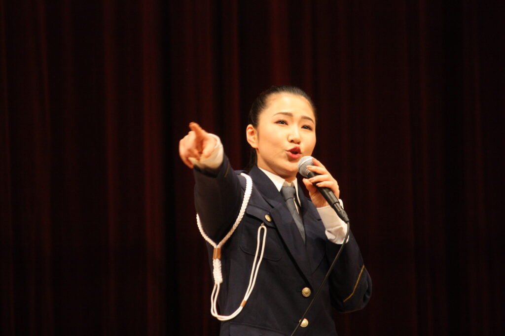 「歌い手になっていなければ警察官になりたかった! そんな夢が叶ってめっちゃ嬉しいです。少しでもみんなが安全に過ごせるように呼びかけたい」と交通安全の啓蒙活動を行った。