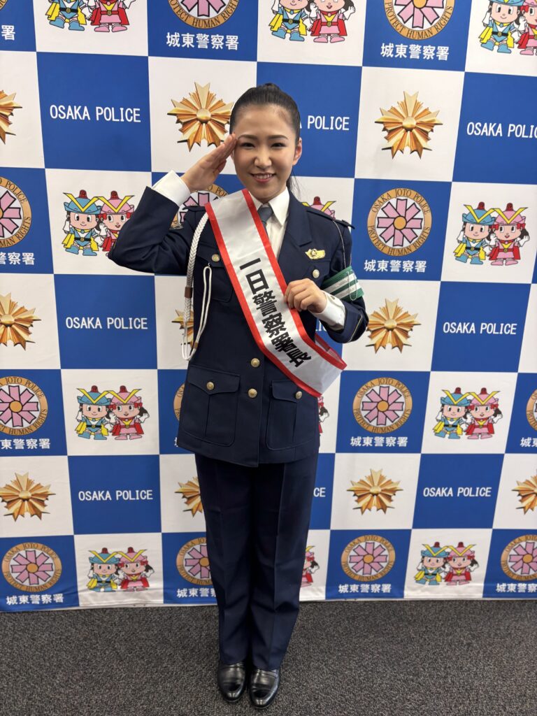 田中あいみが本日4月8日、大阪府城東警察の一日警察署長に就任、交通安全を呼びかけるイベント「高齢者交通安全大会」に出演した。